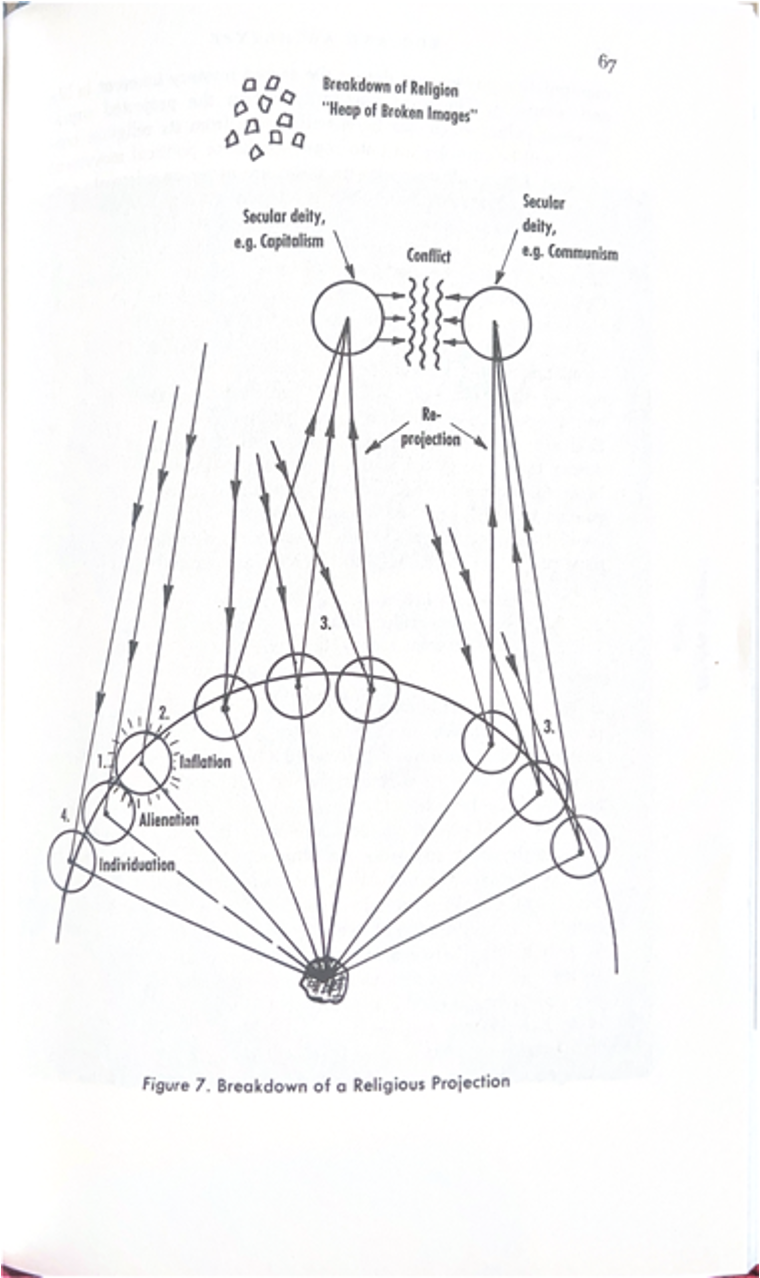 “When the archetypes have no adequate container such as an established religious structure, they have to go somewhere else because the archetypes are facts of psychic life. One possibility is that they will be projected onto banal or secular matters…. This is particularly dangerous because whenever a religious motivation is acting unconsciously it causes fanaticism with all its destructive consequences.”